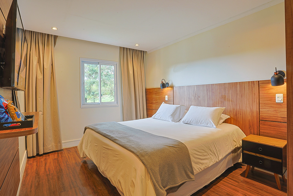 Os apartamentos dessa categoria contam com 20m². Possuem janela e ficam localizados no terceiro andar (acesso por escadas), contam com um ambiente aconchegante, Smart Tv 43" e wifi.
