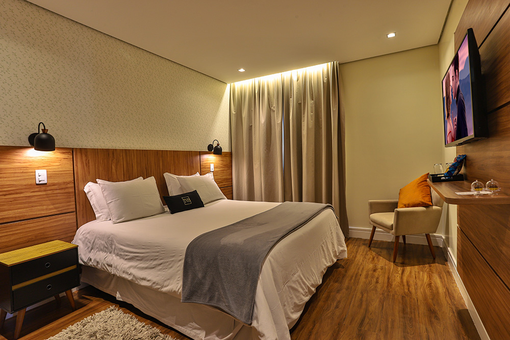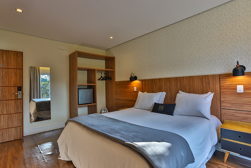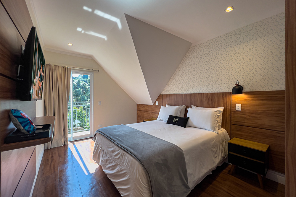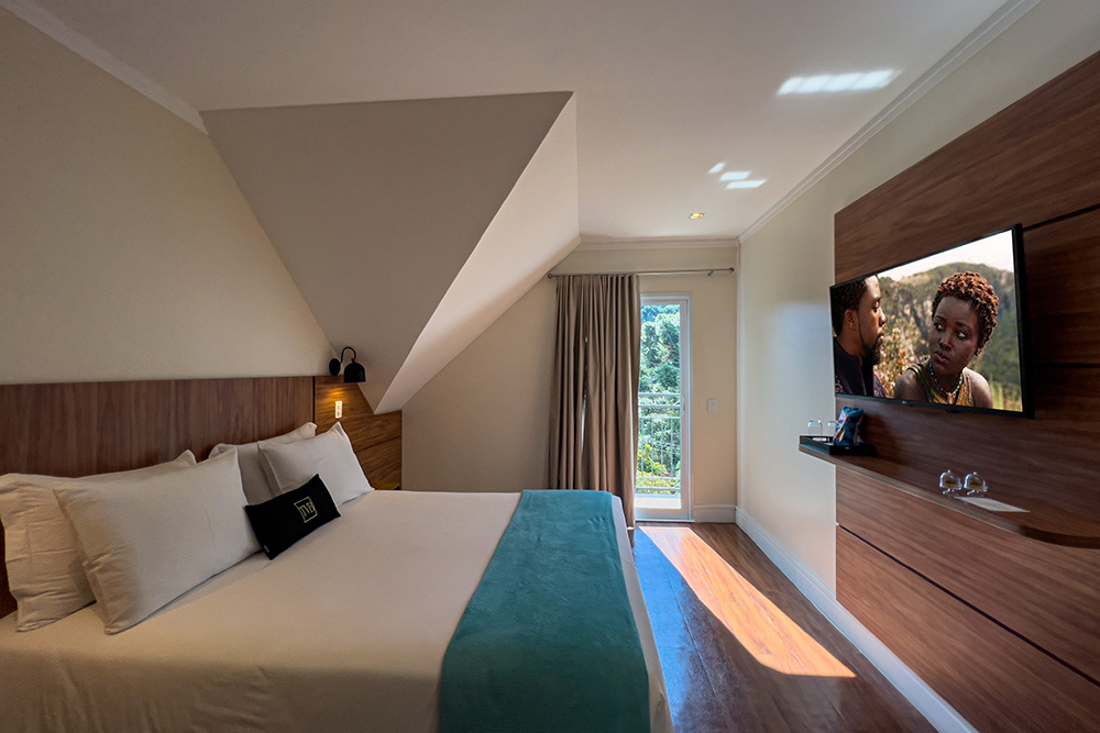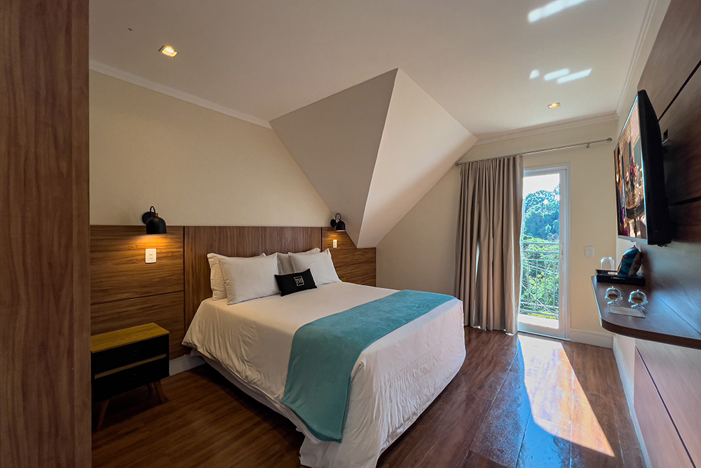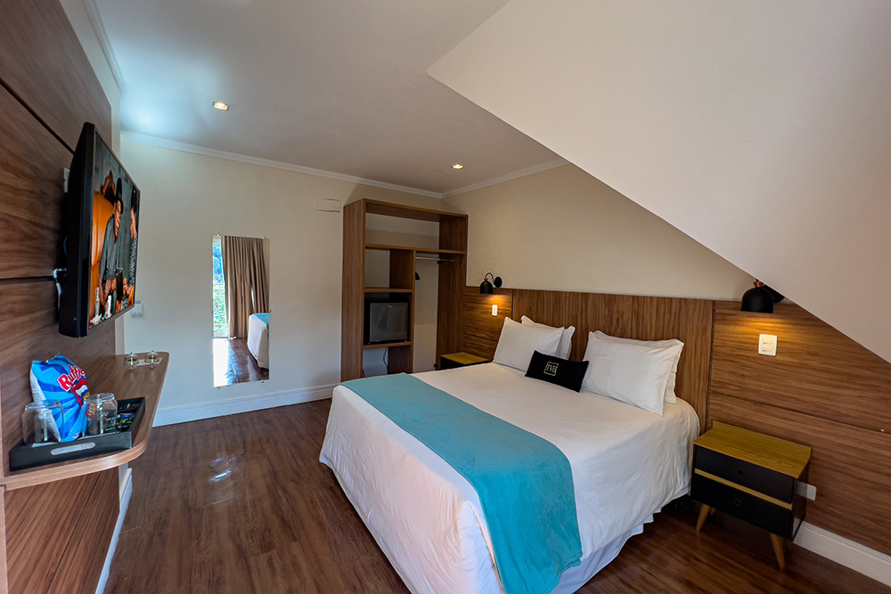 Os apartamentos dessa categoria possuem aprox. 28m² , dispõe de varanda com bela vista para as montanhas, e ficam localizados nos segundo e terceiro andar (acesso por escadas), contam com um ambiente aconchegante e piso de madeira, Smart Tv 43" e wifi.